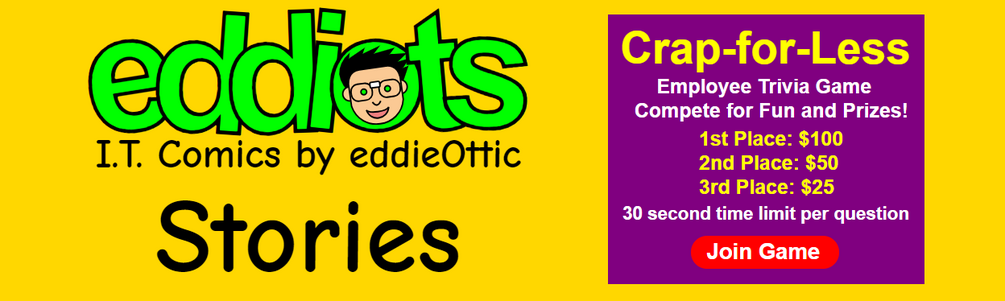 These are just a few of the many I.T. mysteries explored by "Stories", the first eddiots long-form comic book. Of course, the biggest mystery of them all: what's taking you so long to read this book?